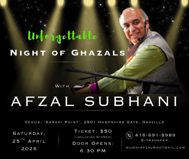 Afzal Subhani has captivated audiences with his unmatched versatility, seamlessly moving between genres—from soulful ghazals to vibrant film songs. Known for his powerful compositions and moving performances, Afzal's music has touched the hearts of many.